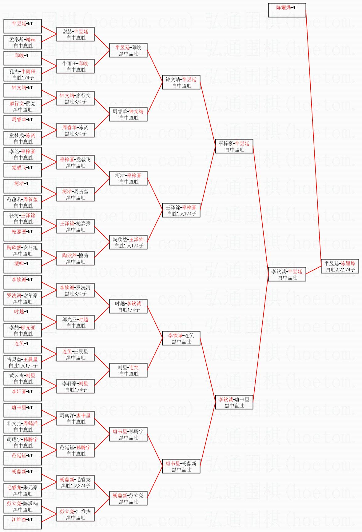 1.陈耀烨获得冠军,芈昱廷获得亚军。决赛比分:陈耀烨2:0芈昱廷。棋局: