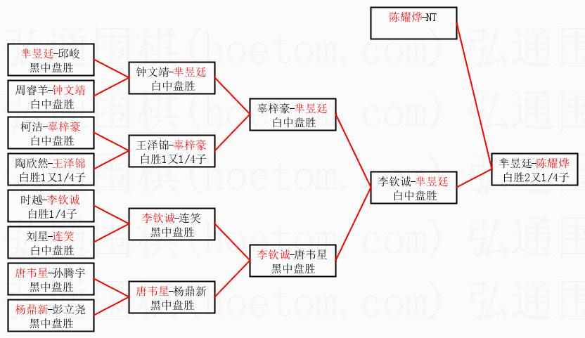 1.陈耀烨获得冠军,芈昱廷获得亚军。决赛比分:陈耀烨2:0芈昱廷。棋局: