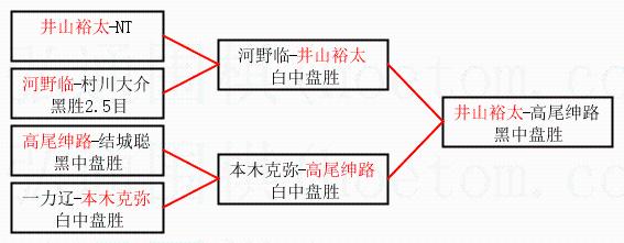 3.下半区半决赛高尾绅路获胜,比分:高尾绅路1:0本木克弥。棋局: