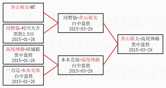 2.上半区半决赛井山裕太获胜, 比分:井山裕太 1:0 河野临。棋局: