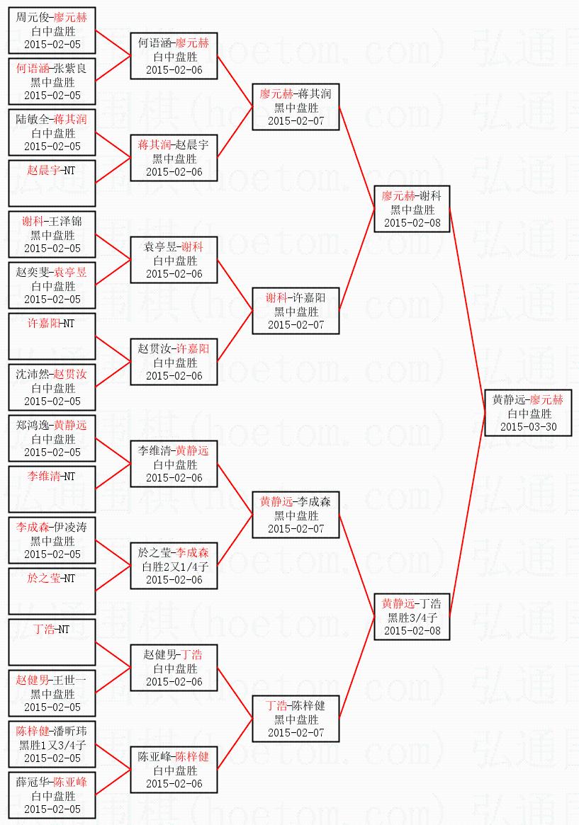 1.廖元赫获得冠军,黄静远获得亚军。决赛比分:廖元赫2:1黄静远。棋局: