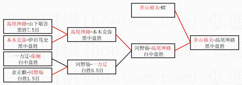3.下半区半决赛高尾绅路获胜,比分:高尾绅路1:0河野临。棋局: