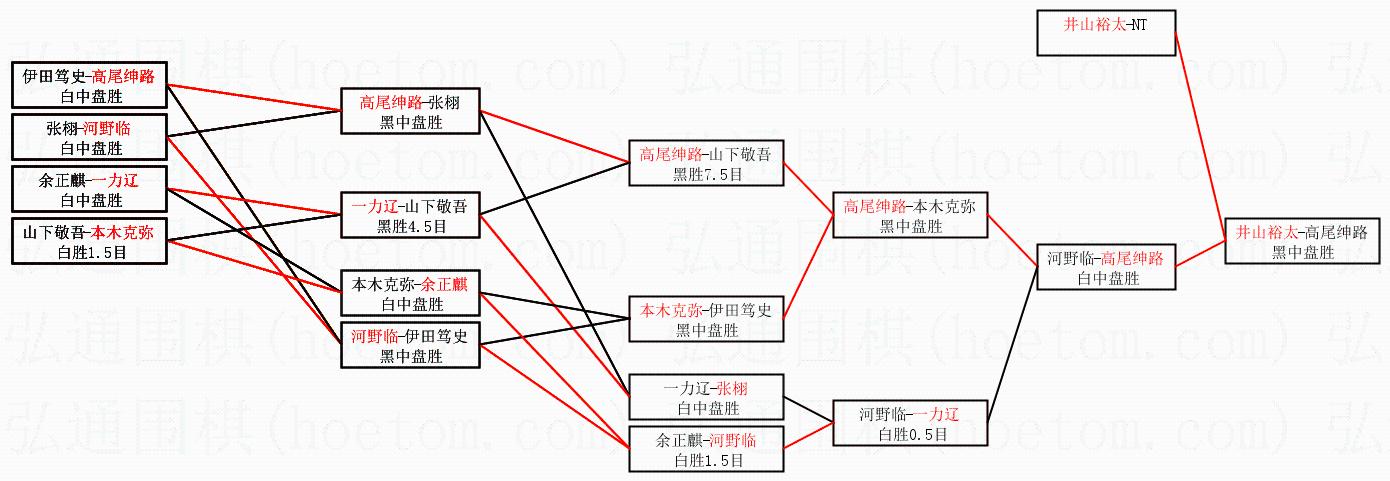 1.井山裕太获得冠军,高尾绅路获得亚军。决赛比分:井山裕太4:1高尾绅路。棋局: