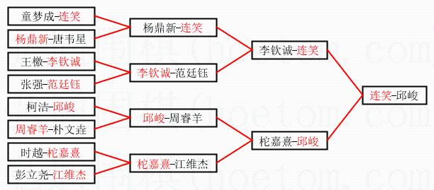 2.上半区半决赛连笑获胜, 比分:连笑 2:1 李钦诚。棋局:
