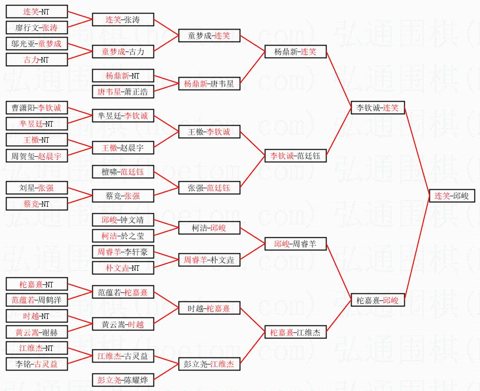 | 2.上半区半决赛连笑获胜, 比分:连笑 2:1 李钦诚。棋局: | ||