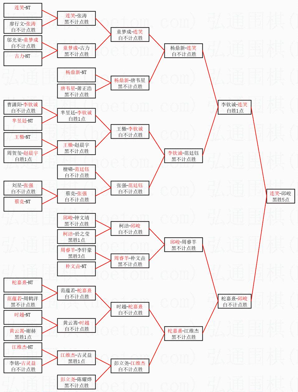 | 2.上半区半决赛连笑获胜, 比分:连笑 2:1 李钦诚。棋局: | ||