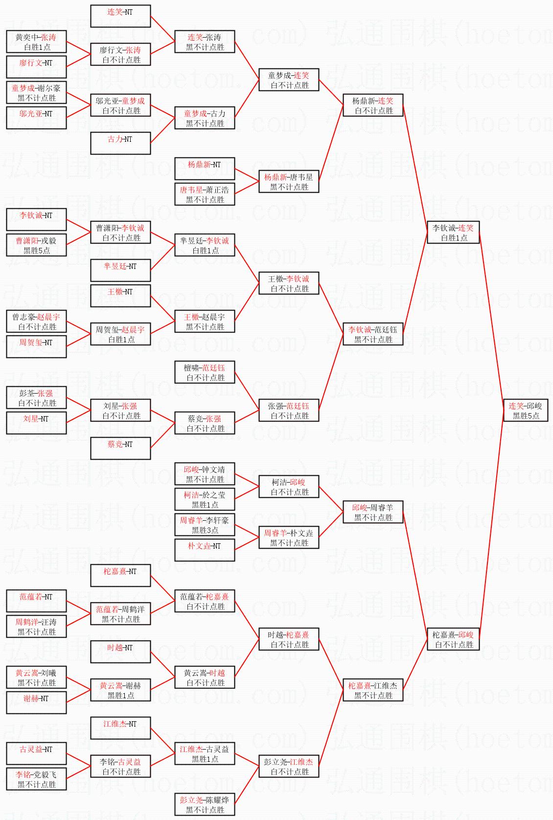 2.上半区半决赛连笑获胜, 比分:连笑 2:1 李钦诚。棋局: