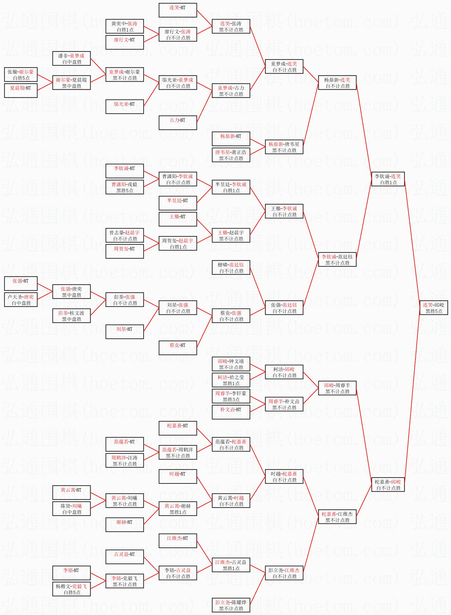 2.上半区半决赛连笑获胜, 比分:连笑 2:1 李钦诚。棋局:
