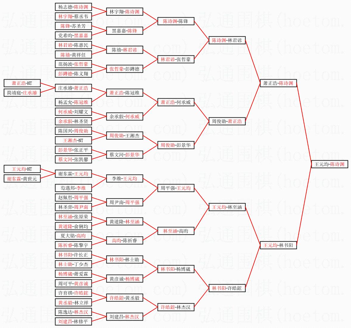1.陈诗渊获得冠军,王元均获得亚军。决赛比分:陈诗渊2:0王元均。棋局: