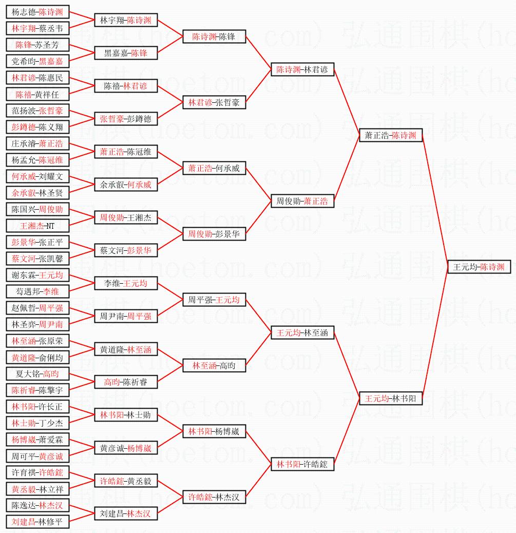 1.陈诗渊获得冠军,王元均获得亚军。决赛比分:陈诗渊2:0王元均。棋局: