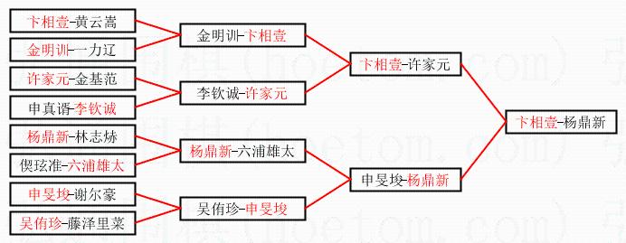 1.卞相壹获得冠军,杨鼎新获得亚军。决赛比分:卞相壹1:0杨鼎新。棋局: