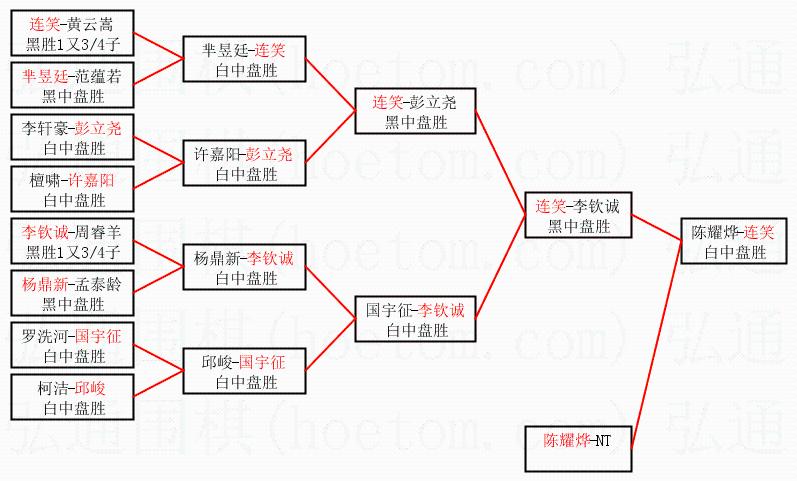 1.连笑获得冠军,陈耀烨获得亚军。决赛比分:连笑3:0陈耀烨。棋局: