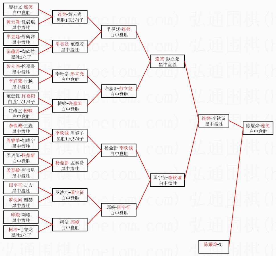 | 1.连笑获得冠军,陈耀烨获得亚军。决赛比分:连笑3:0陈耀烨。棋局: | ||