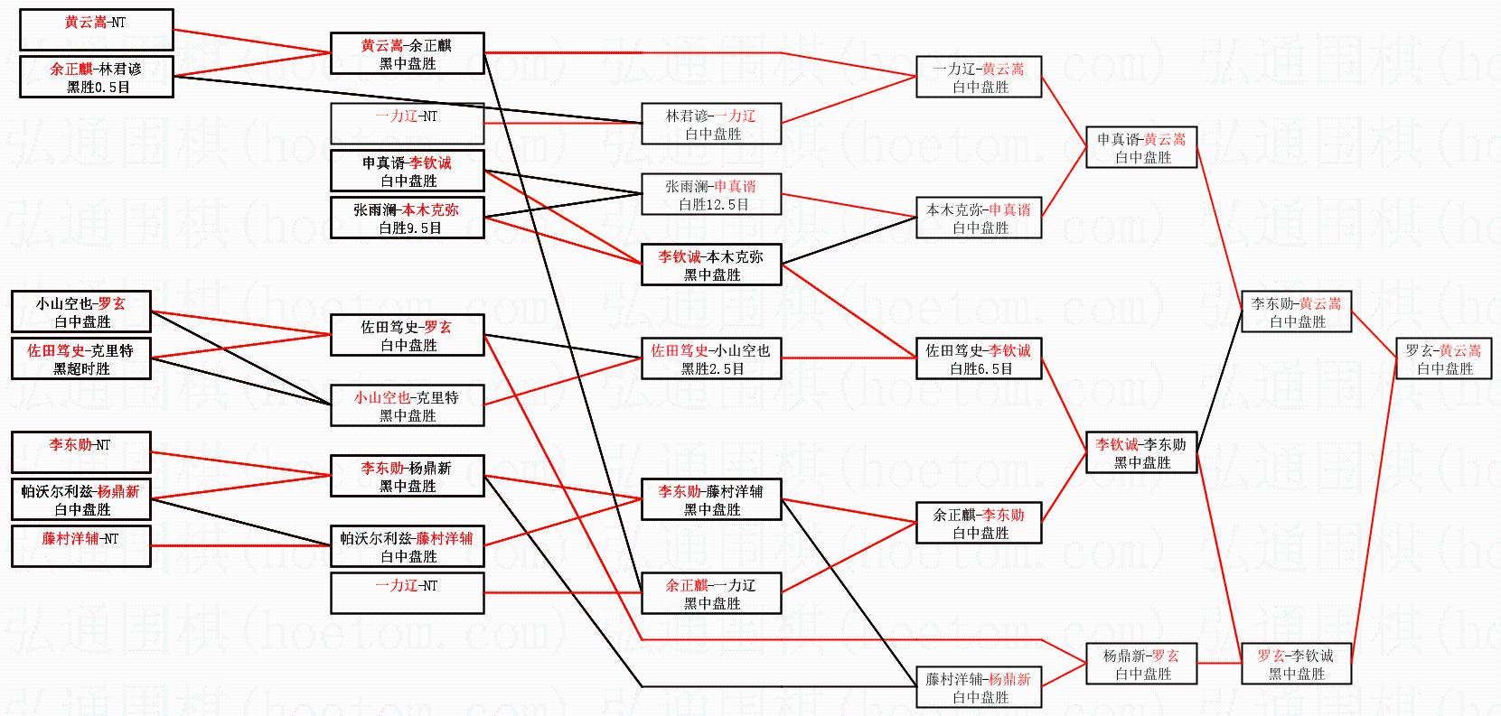 | 2.上半区半决赛黄云嵩获胜, 比分:黄云嵩 1:0 李东勋。棋局: | ||