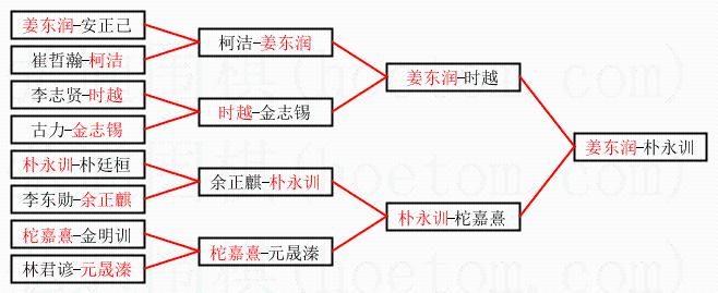 1.姜东润获得冠军,朴永训获得亚军。决赛比分:姜东润2:1朴永训。棋局: