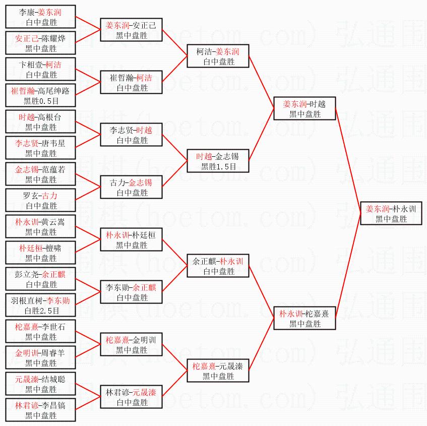 1.姜东润获得冠军,朴永训获得亚军。决赛比分:姜东润2:1朴永训。棋局: