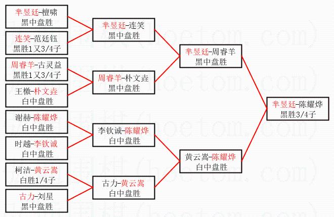 2.上半区半决赛芈昱廷获胜, 比分:芈昱廷 1:0 周睿羊。棋局: