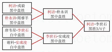| 3.下半区半决赛李世石获胜,比分:李世石2:0安成浚。棋局: | ||