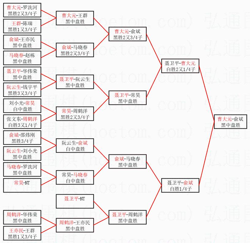 | 1.曹大元获得冠军,俞斌获得亚军。决赛比分:曹大元4:3俞斌。棋局: | ||
