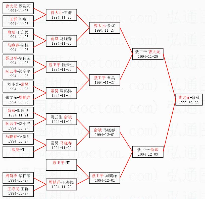| 1995-01-27 曹大元-俞斌 黑胜2又3/4子 | ||