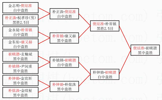 | 3.下半区半决赛崔暎讃获胜,比分:崔暎讃1:0朴钟勋。棋局: | ||