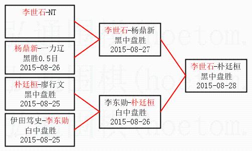 1.李世石获得冠军,朴廷桓获得亚军。决赛比分:李世石1:0朴廷桓。棋局: