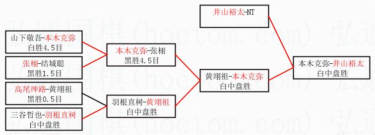 | 1.井山裕太获得冠军,本木克弥获得亚军。决赛比分:井山裕太4:0本木克弥。棋局: | ||