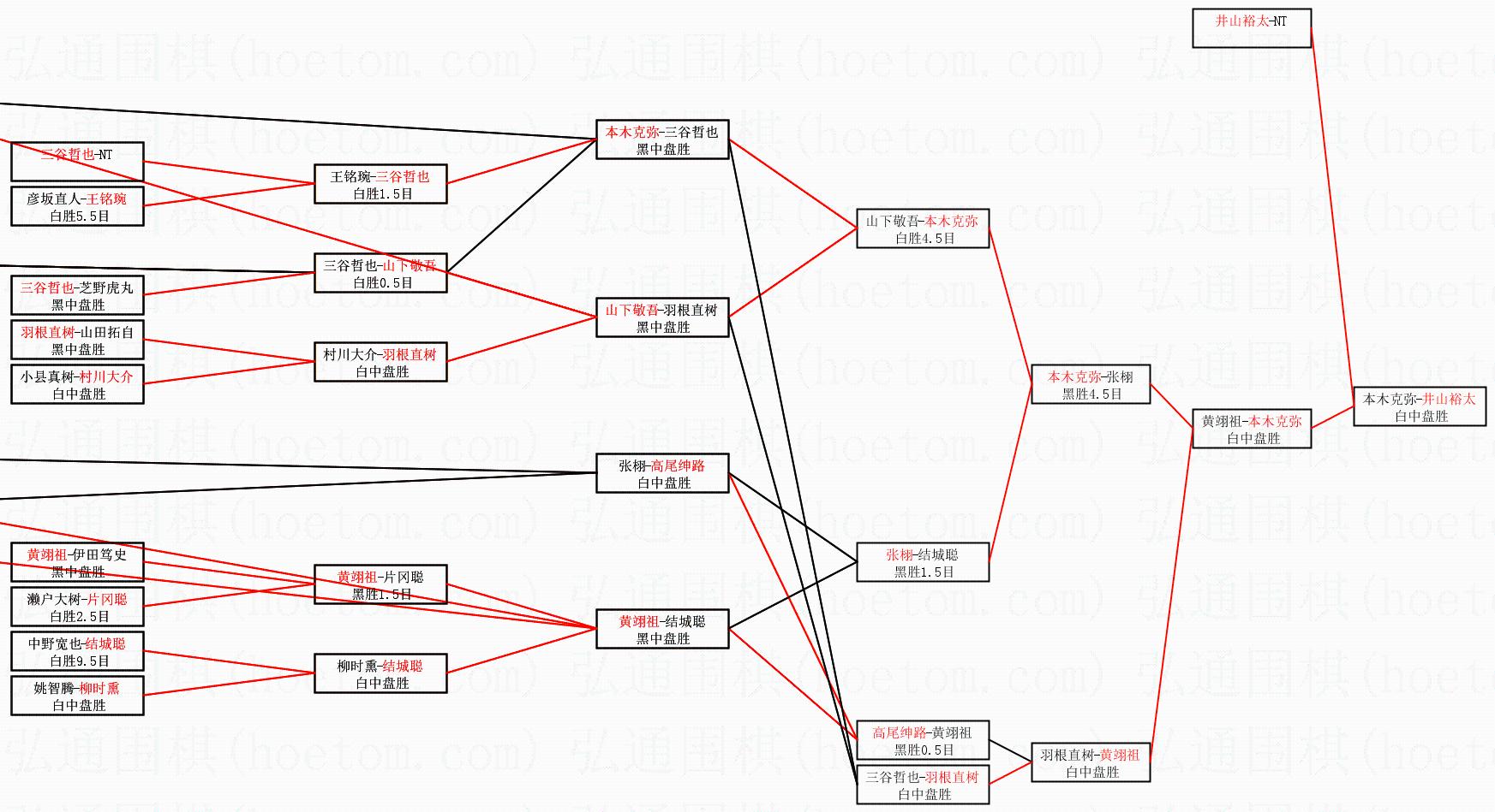 1.井山裕太获得冠军,本木克弥获得亚军。决赛比分:井山裕太4:0本木克弥。棋局: