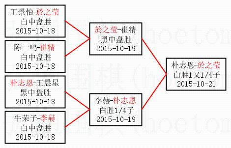 1.於之莹获得冠军,朴志恩获得亚军。决赛比分:於之莹1:0朴志恩。棋局: