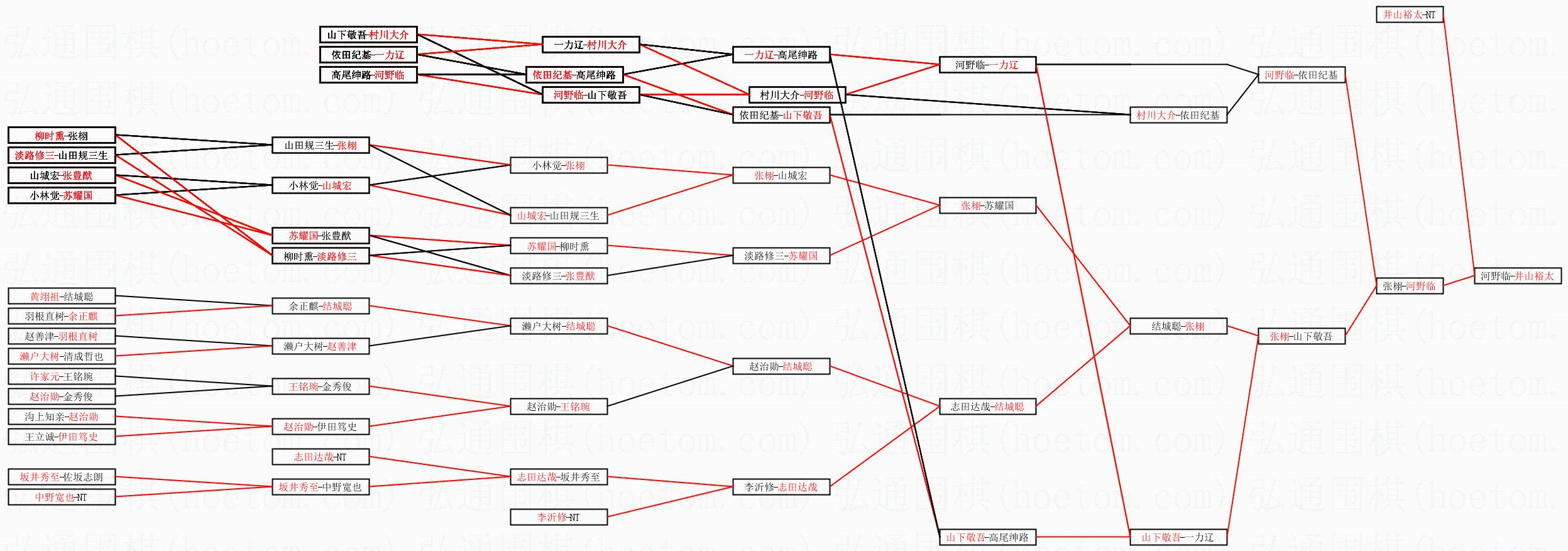 1.井山裕太获得冠军,河野临获得亚军。决赛比分:井山裕太4:2河野临。棋局: