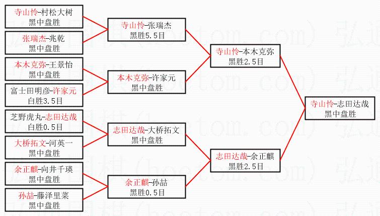 1.寺山怜获得冠军,志田达哉获得亚军。决赛比分:寺山怜1:0志田达哉。棋局: