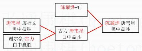 3.下半区半决赛唐韦星获胜,比分:唐韦星1:0古力。棋局: