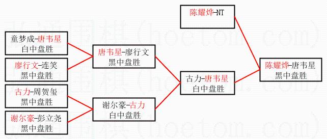 3.下半区半决赛唐韦星获胜,比分:唐韦星1:0古力。棋局: