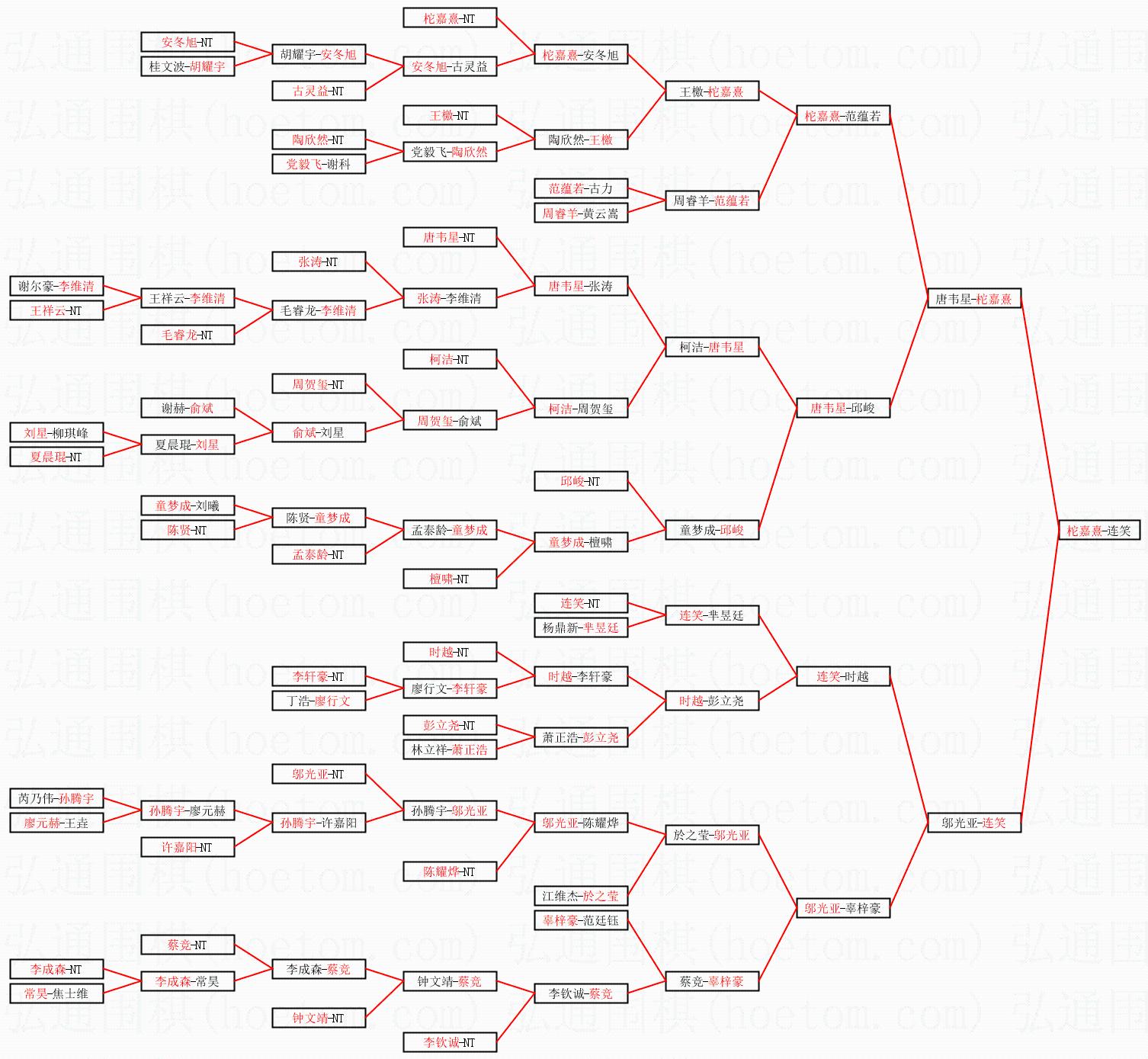 | 1.柁嘉熹获得冠军,连笑获得亚军。决赛比分:柁嘉熹2:0连笑。棋局: | ||