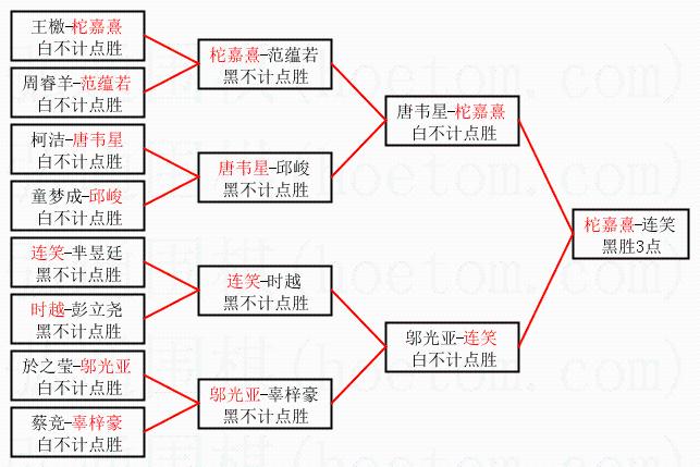 | 1.柁嘉熹获得冠军,连笑获得亚军。决赛比分:柁嘉熹2:0连笑。棋局: | ||