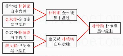 | 1.朴钟勋获得冠军,朴镇锳获得亚军。决赛比分:朴钟勋2:1朴镇锳。棋局: | ||