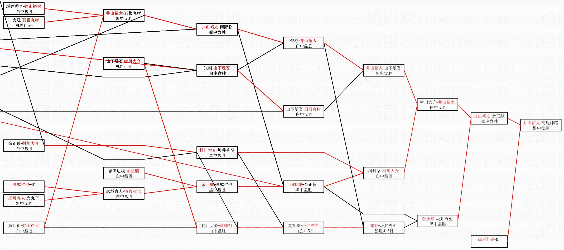 1.井山裕太获得冠军,高尾绅路获得亚军。决赛比分:井山裕太4:1高尾绅路。棋局: