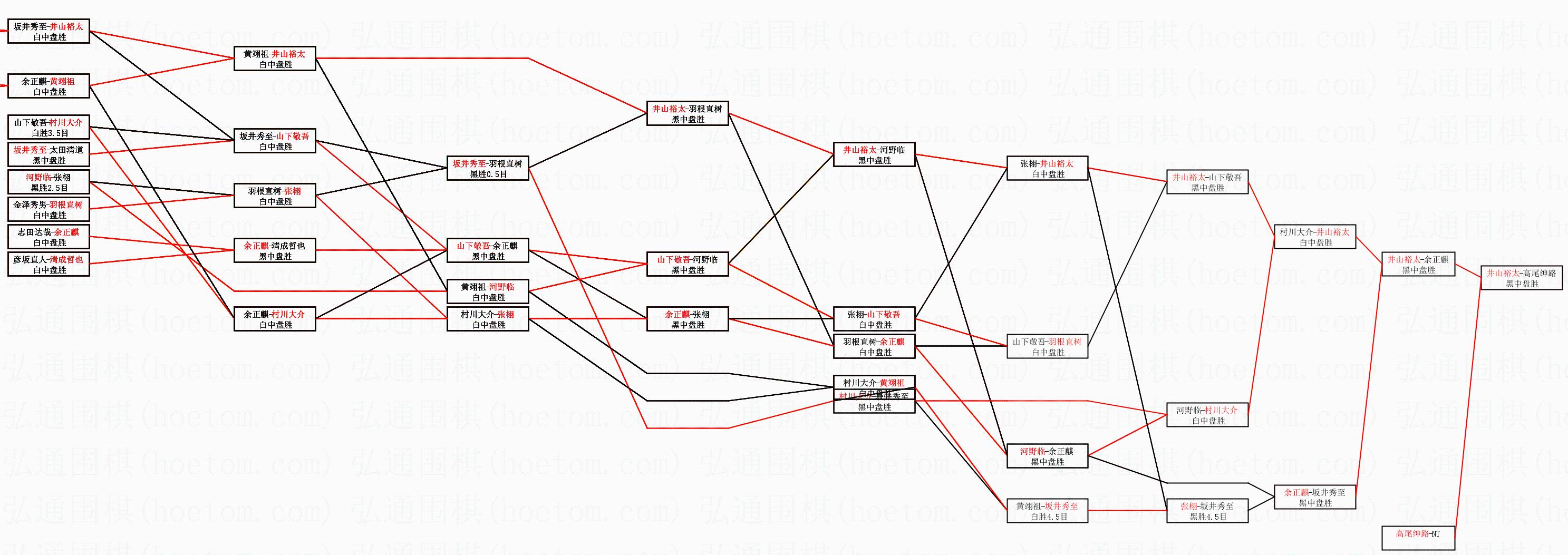 1.井山裕太获得冠军,高尾绅路获得亚军。决赛比分:井山裕太4:1高尾绅路。棋局: