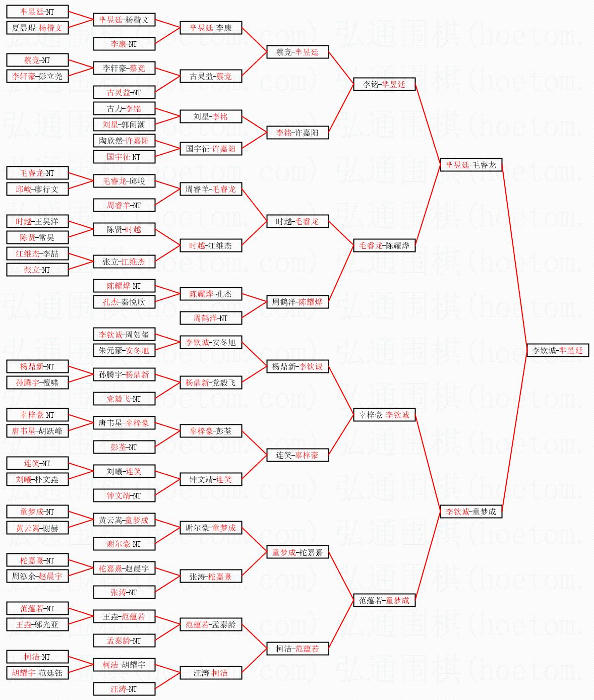 1.芈昱廷获得冠军,李钦诚获得亚军。决赛比分:芈昱廷1:0李钦诚。棋局:
