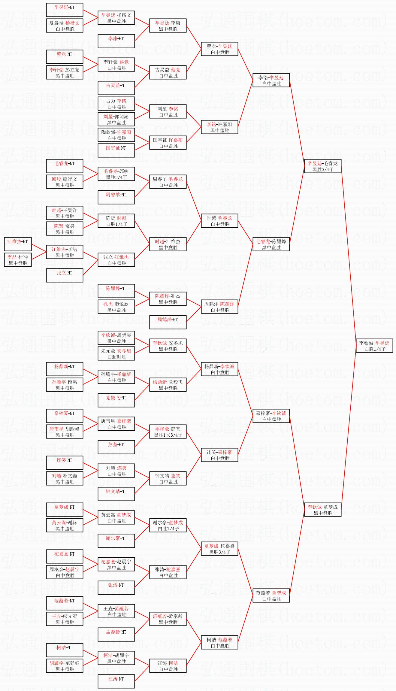 1.芈昱廷获得冠军,李钦诚获得亚军。决赛比分:芈昱廷1:0李钦诚。棋局: