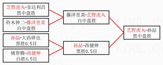 2.上半区半决赛芝野虎丸获胜, 比分:芝野虎丸 1:0 藤泽里菜。棋局: