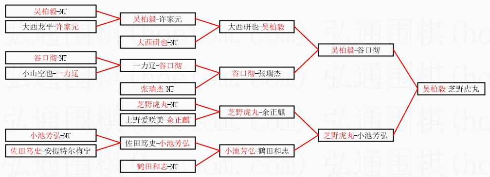 1.吴柏毅获得冠军,芝野虎丸获得亚军。决赛比分:吴柏毅1:0芝野虎丸。棋局: