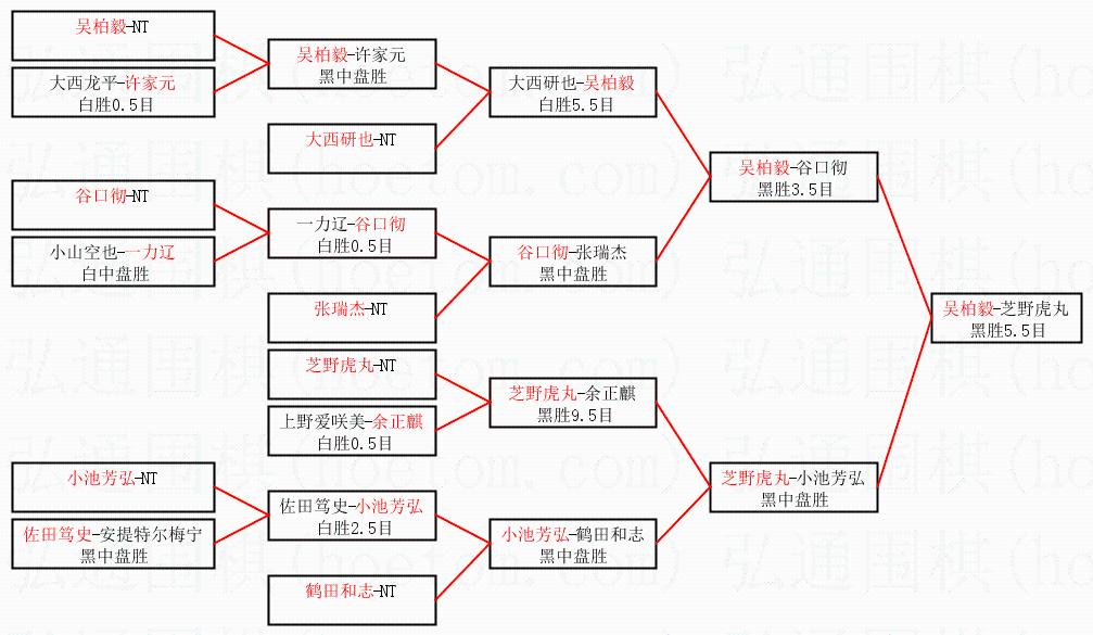 1.吴柏毅获得冠军,芝野虎丸获得亚军。决赛比分:吴柏毅1:0芝野虎丸。棋局: