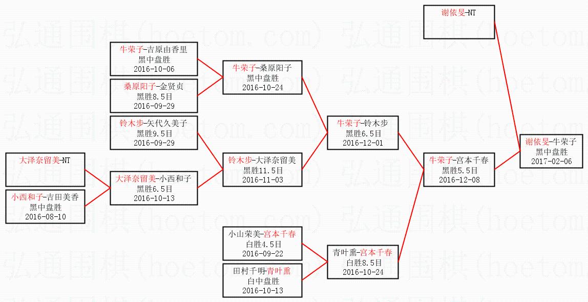 3.下半区半决赛牛荣子获胜,比分:牛荣子1:0宫本千春。棋局:
