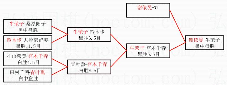3.下半区半决赛牛荣子获胜,比分:牛荣子1:0宫本千春。棋局: