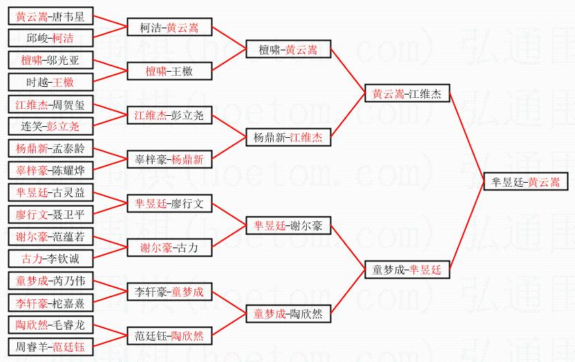 2.上半区半决赛黄云嵩获胜, 比分:黄云嵩 1:0 江维杰。棋局: