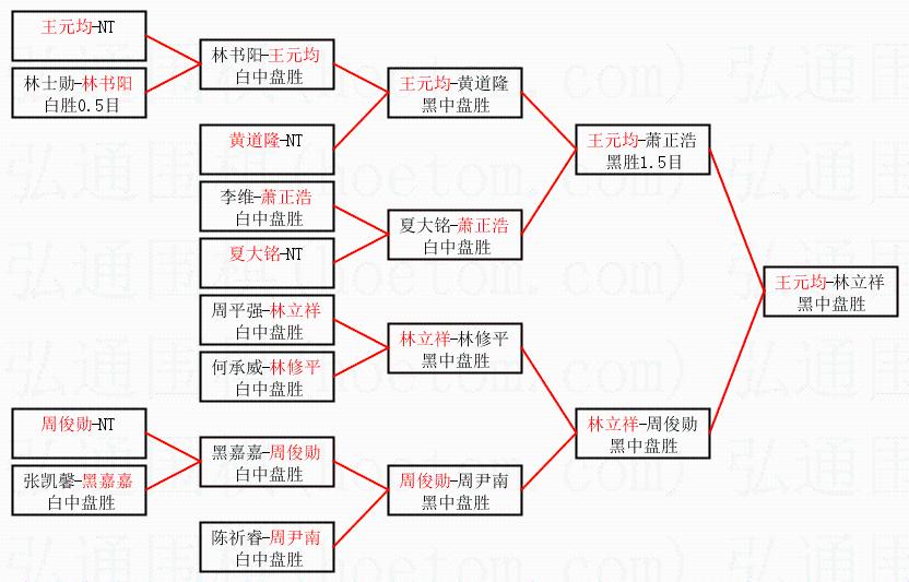 | 1.王元均获得冠军,林立祥获得亚军。决赛比分:王元均1:2林立祥。棋局: | ||