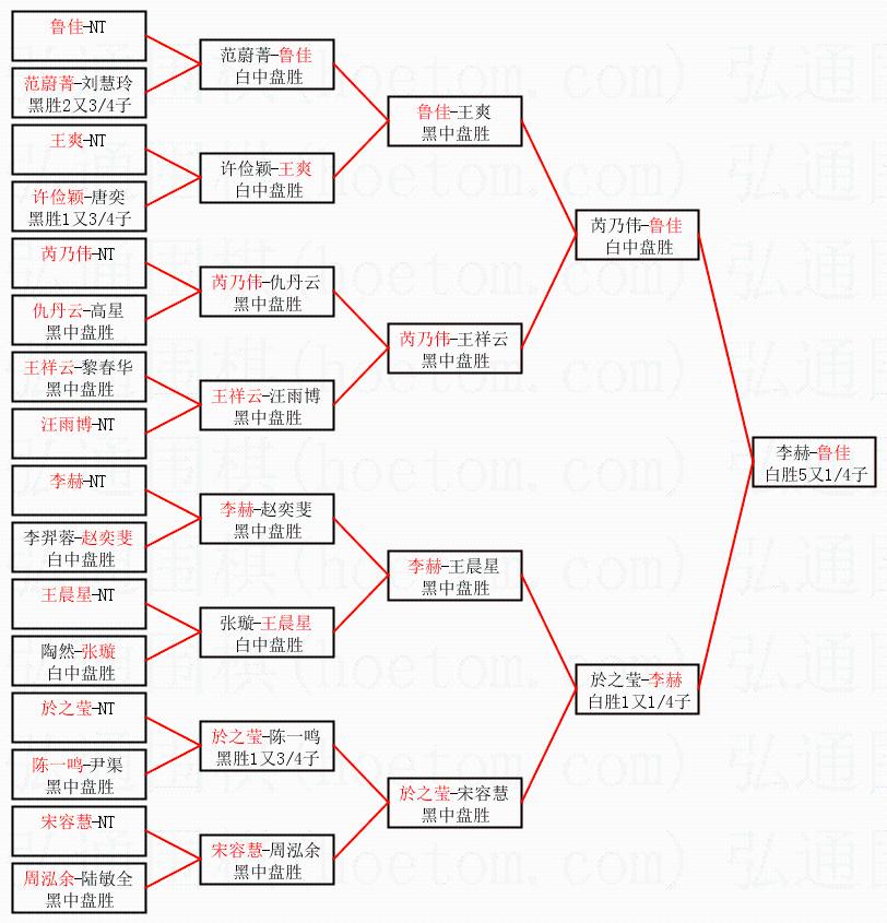 1.鲁佳获得冠军,李赫获得亚军。决赛比分:鲁佳2:1李赫。棋局: