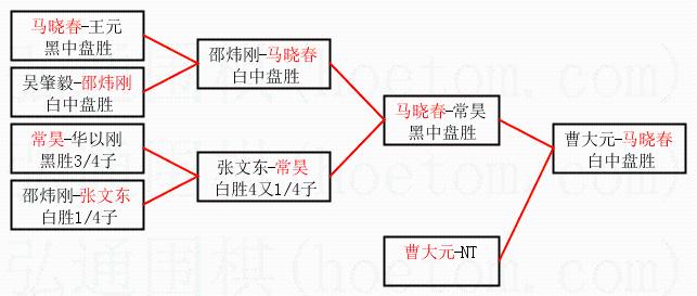 2.上半区半决赛马晓春获胜, 比分:马晓春 1:0 常昊。棋局: