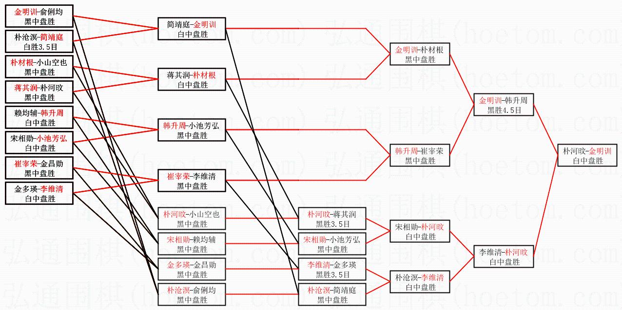 | 1.金明训获得冠军,朴河旼获得亚军。决赛比分:金明训2:0朴河旼。棋局: | ||